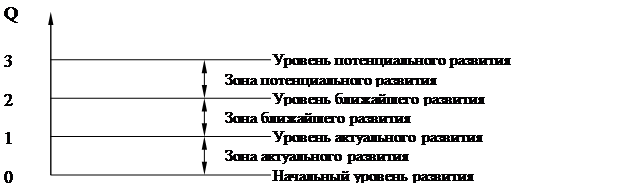 Рис. 1 Уровни и зоны развития в обучении (Q -показатель развития)