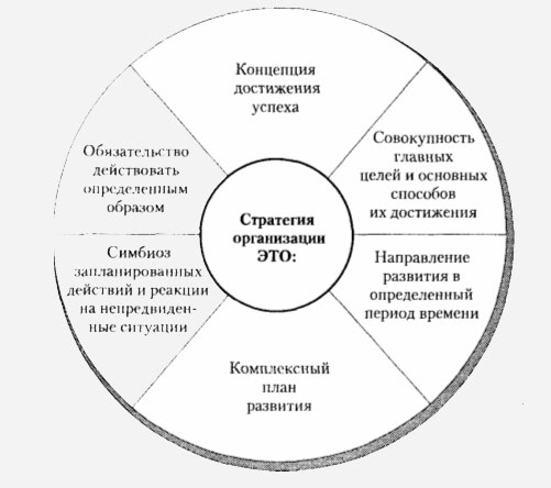 Разработать стратегию организации — значит определить общие направления развития для достижения долговременных конкурентных преимуществ и других корпоративных целей. Обычно стратегия планируется на длительный период и ориентируется на будущее с поэтапным процессом реализации. Стратегия как функция времени не просто сосредоточена на определенном периоде, она прежде нечто является функцией направления. Именно стратегия устанавливает направление деятельности организации: рост, стабилизация, сокращение или комбинация вариантов; решения о конкретных товарах и рынках для направления финансовых и трудовых ресурсов, определение типа конкурентного преимущества.