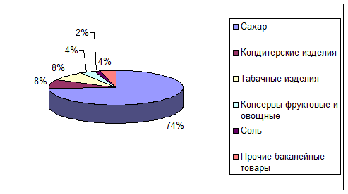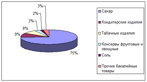 Как видно из рисунков 3-4, в структуре товарооборота наибольшую долю и по плану и по факту занимал сахар (75 %), а наименьшую – соль (2 %).