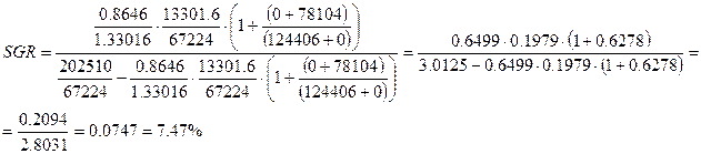 При существующих пропорциях темп экономического роста за счет собственных источников средств составляет 7.47%.