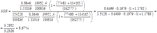 Темп экономического роста за счет собственных источников (самофинансирования) увеличится и составит 8.67%. Рентабельность собственного капитала не изменится и составит 10.85%.