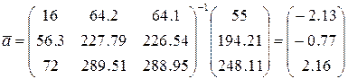 неизвестные коэффициенты находятся по формулам (используя метод наименьших квадратов (МНК)):