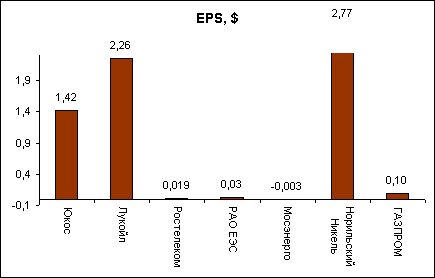 На рис. 2 приведен показатель прибыли компании в расчете на одну акцию (Earning per share, EPS) по основным российским компаниям.[11]
