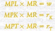Чтобы показать применение этого правила, предположим, что мы имеем дело с тремя факторами: трудом, капиталом и землей, фирма максимизирует прибыль, увеличивая применение каждого из факторов до той точки, в которой предельная доходность равна издержкам на вовлечение этого фактора.
