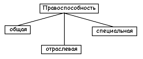 Под правоспособностью понимается признаваемая государством общая (абстрактная) возможность иметь предусмотренные законом права и обязанности, способность быть их носителем. Различают общую, отраслевую и специальную правоспособность.