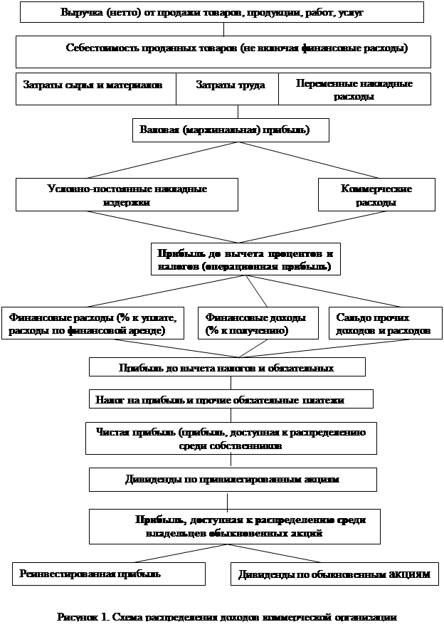 Как следует из рисунка 1, укрупненно алгоритм распределения текущего дохода таков: полученная коммерческой организацией выручка от продаж последовательно уменьшается на величину: