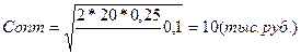 С опт = 0,1 * 8/2 + 0,25 * 20/ 8 = 1,025 (тыс. руб.)
