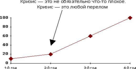 Рис.1. Начало, переломный пункт и конец кризиса на предприятии.