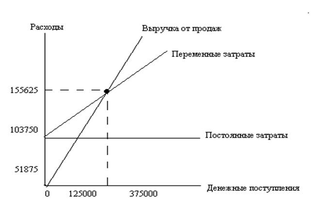 Рассматривая график безубыточности предприятия, хотелось бы отметить, что точка безубыточности равна 155625 руб. Это означает, что предприятие уже после чуть более месяца своей деятельности может получат прибыль, тем самым подняться выше очки безубыточности.