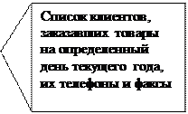 Исходя из результатов анализа информационной потребности, определяем состав и структуру требуемого сообщения S(Список клиентов, заказавших товары на определенный день текущего года, их телефоны и факсы)