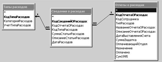 FROM [Отчеты о расходах] INNER JOIN ([Типы расходов] RIGHT JOIN [Сведения о расходах] ON [Типы расходов].КодТипаРасходов = [Сведения о расходах].КодТипаРасходов) ON [Отчеты о расходах].КодОтчетаОРасходах = [Сведения о расходах].КодОтчетаОРасходах