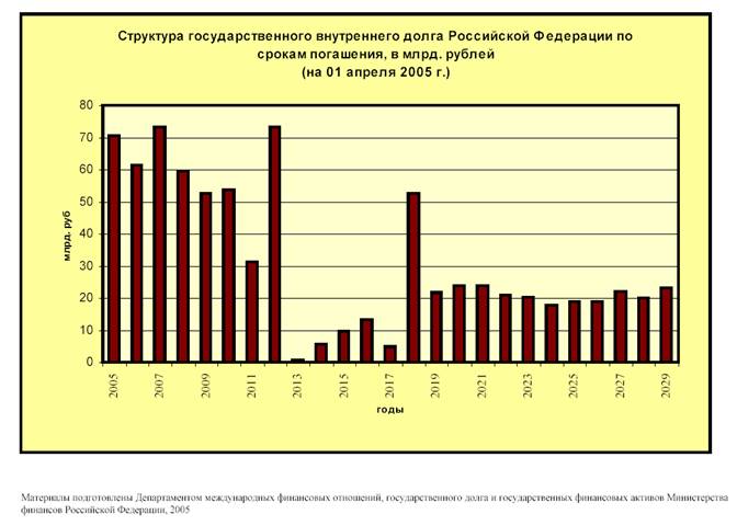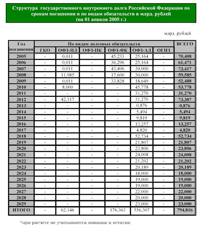 Отсутствуют средне – и долгосрочное планирование, в том числе при подготовке проекта федерального бюджета, состава и объема государственного долга, а также графиков его погашения. Без подобного прогноза, хотя бы на двух, трех годичный период, невозможно проводить перспективный анализ ситуации.