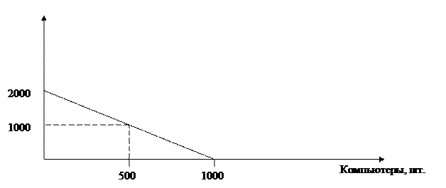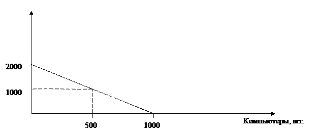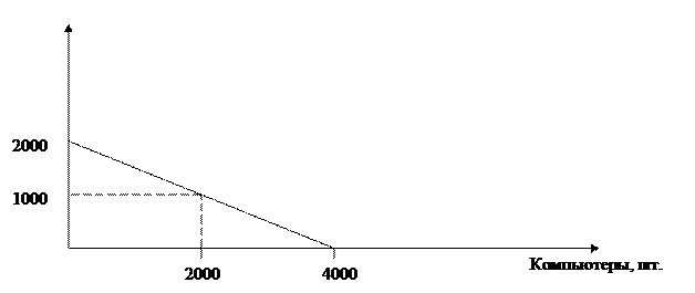 в) Как будет выглядеть на рисунке линия производственных возможностей США, если максимальное количество компьютеров, которое может быть произведено в этой стране, составляет 1000 штук.