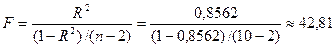 (см. «Регрессионную статистику» в прил. 1), где p=1 — число факторов в регрессионной модели.