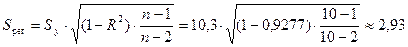 Стандартная ошибка линейной парной регрессии Sрег определена там же: