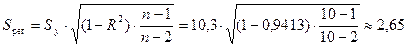где n=10 — число наблюдений значений переменных X и Y) (см. «Вывод остатка» в прил. 1) и рассчитана остаточная