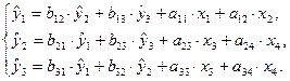 Используя матрицу коэффициентов модели в исходных данных, записываем систему одновременных уравнений регрессии в структурной форме:
