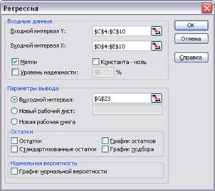 регрессионный анализ и определяем параметры уравнения линейной регрессии