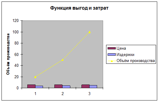 Определить общую выручку фирмы, действующей на рынке совершенной конкуренции, если известно, что предельная выручка равна 6 руб.; минимальные средние переменные издержки составляют 1 рубль и достигаются при выпуске 20 единиц продукции. Минимальные средние общие затраты составляют 4 рубля и достигаются при выпуске 50 единиц продукции. График затрат после 20 единиц имеет линейный вид, фирма старается максимизировать прибыль. Построить графики функций выгод и затрат и показать точку оптимального объёма производства.