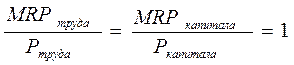 Фирма применяет соотношение ресурсов, обеспечивающее максимальную прибыль, если цена на каждый ресурс равна его предельному продукту в денежном выражении, и, алгебраически, когда