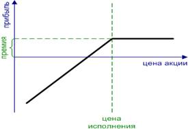 · Опцион на покупку (call option) - право покупателя опциона ( а не его обязанность) получить от продавца опциона определенную имущественную ценность (акция, займ и т.п.) по установленной цене, либо осуществить расчет, в согласованный срок..