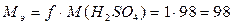 В реакции (1) каждый моль серной кислоты отдает 1 моль ионов водорода и фактор эквивалентности f = 1, а молярная масса эквивалента равна