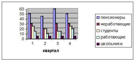 К пользователям товаров, предлагаемых к рассмотрению, относится следующие группы потребителей: школьники, студенты, неработающие, работающие, пенсионеры. Таким образом, мы выбрали наиболее привлекательные сегменты потребительского рынка, образующие целевой рынок. Результаты сегментации отражены на рисунке 1.