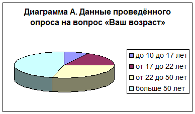 Таблица А. Данные проведённого опроса на вопрос «Ваш возраст»