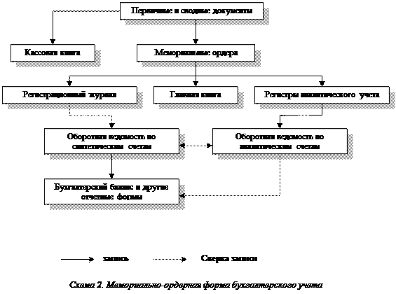 Состав учетных регистров и последовательность записи в них при мемориально-ордерной форме учета представлены на схеме 2.