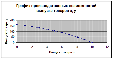 Определите альтернативную стоимость выпуска товара x и постройте график производственных возможностей выпуска товаров x, y.