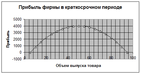 Из таблицы и графика видно, что фирма максимизирует свою прибыль при объеме выпуска товаров Q=50 ед. и эта прибыль равна 4000.