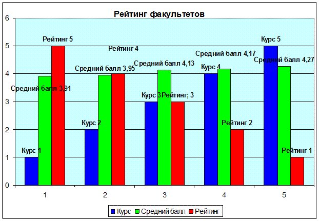 5) Находим средний балл факультета суммируя средние баллы каждого курса и делим на кол-во курсов.
