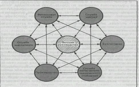 Производственная структура предприятия определяет структуру управления им. Структура управления предприятием — это состав управленческих подразделений, и их взаимосвязи. Для осуществления функций управления на предприятиях создается аппарат управления, который подразделяется на отдельные, но взаимосвязанные части — органы управления. Каждый орган управления выполняет определенный комплекс операций и процедур по управлению производством, т. е. осуществляет функции управления. Аппарат управления по горизонтали делится на звенья, а по вертикали — на ступени управления, образующие иерархию. Последовательность подчинения органов управления, находящихся на одном горизонтальном уровне, образует ступени управления. Например, бригады на участках — это ступень управления; совокупность участков цехов — это вторая ступень, далее идет совокупность цехов и т. д.