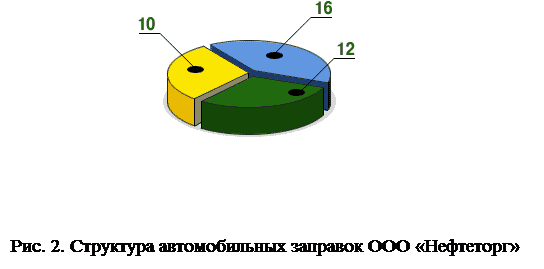 На сегодняшний день предприятие имеет 38 автозаправок на трассах федерального и областного назначения, в городах и в сельской местности. Их структура выглядит следующим образом (рис.2. ).