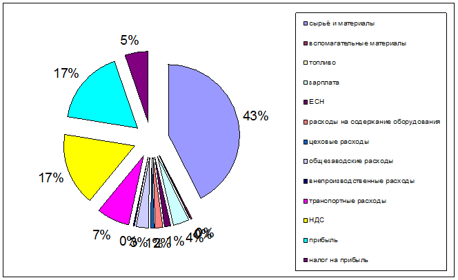 Как видно из диаграммы основными категориями расходов являются расходы на сырьё, прибыль и НДС.