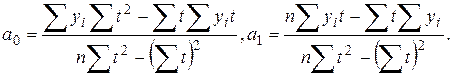 неизвестные коэффициенты находятся по формулам (используя метод наименьших квадратов (МНК)):