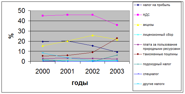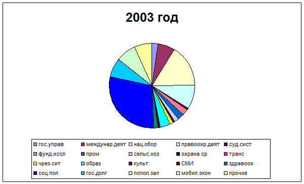 Динамика структуры расходов федерального бюджета Российской Федерации в 2000-2003 годах (в %) [10,11,12,13]