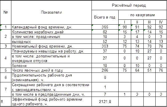 Расчётные трудовые показатели предприятия ООО «Нефтеторг»