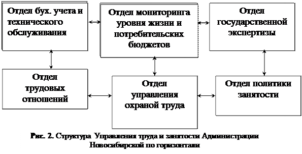 Рассмотрим горизонтальную структуру управления и взаимодействия на примере управления труда и занятости Новосибирской области (рис. 2.)