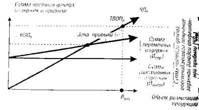 Из приведенного графика видно, что при запланированном объеме реализации продукции (Ртпп) предприятие может получить определенную сумму валовой операционной прибыли (ВОПп), на размер которой сумма, чистого операционного дохода будет превышать сумму операционных издержек — как постоянных, так и переменных. График может быть интерпретирован и в обратном варианте: при запланированной сумме валовой прибыли (ВОПп) плановый объем реализации продукции предприятия должен находиться в точке Ртпп . Этот объем реализации продукции может быть определен на предприятии по следующим формулам: