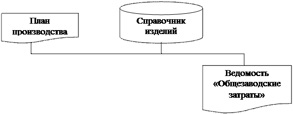 При постановке задачи использовался входной документ «План производства» и справочник «Справочник изделий». В результате должен получиться выходной документ «Общезаводские затраты».
