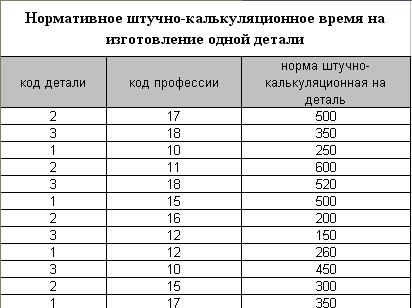 13. Создайте таблицу «Нормативное штучно-калькуляционное время на изготовление одной детали» (рис. 10).