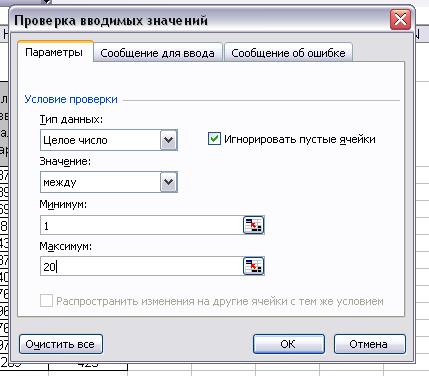 Рис. 5. Задание интервала допустимых значений целых чисел