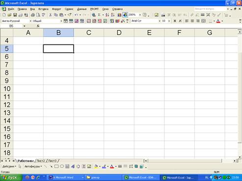 1. При запуске MS Excel открывается окно, в котором создаем таблицу.
