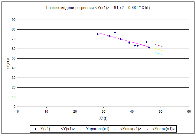 <Y(t= tпрогноз)> =91,72– 0,881* X1(t= tпрогноз)