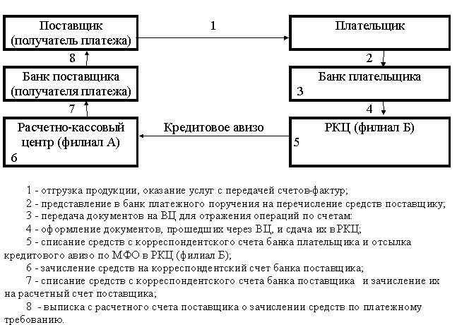 На рисунке представлена схема документооборота при расчетах платежными поручениями.