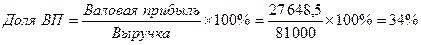 5. Для тщательного обследования необходимо узнать долю чистого дохода, долю затрат и долю валового дохода в общей выручке по формулам: