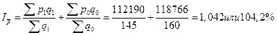 Для изучения динамики среднего уровня цен сельскохозяйственной продукции индексным методом, рассчитаем следующие индексы: