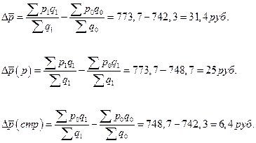 1. Индексы цен переменного, постоянного состава и структурных сдвигов: