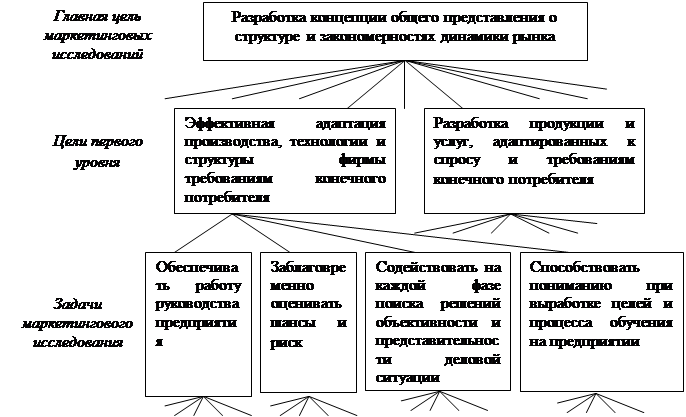 Главная цель маркетинговых исследований заключается в разработке концепции общего представления о структуре и закономерностях динамики рынка и обосновании необходимости и возможностей конкретной фирмы для более эффективной адаптации ее производства, технологий и структуры, а также выводимой на рынок продукции или услуг к спросу и требованиям конечного потребителя.